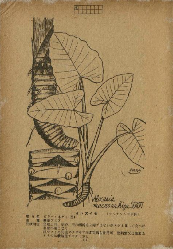 HOMOTYPIC SYNONYMS: Arum macrorrhizon, Caladium macrorrhizon, Colocasia macrorrhizos