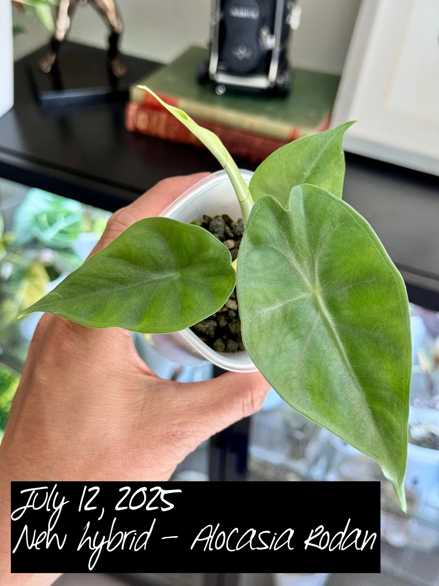 PARENTAGE: Alocasia longiloba x Alocasia baginda ‘Dragon Scale’