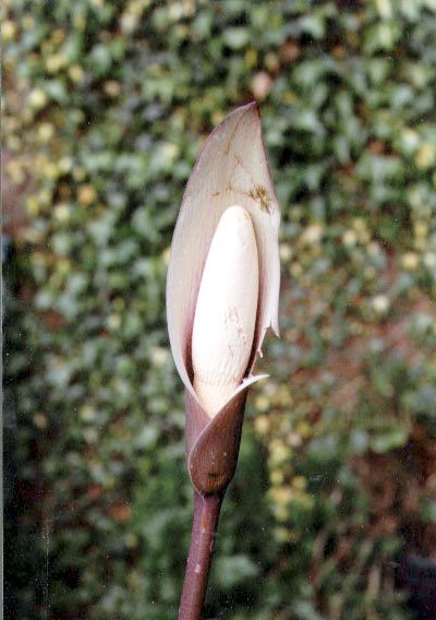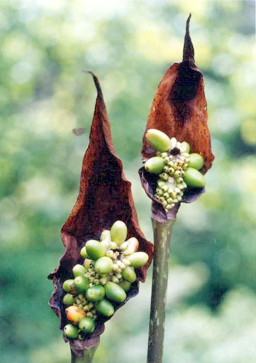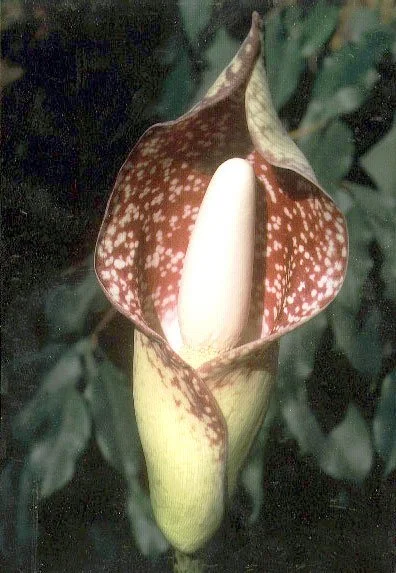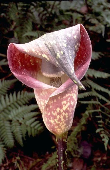 The spathe coloration for this species is heterogenous, ranging from light greenish white to deep speckled red.